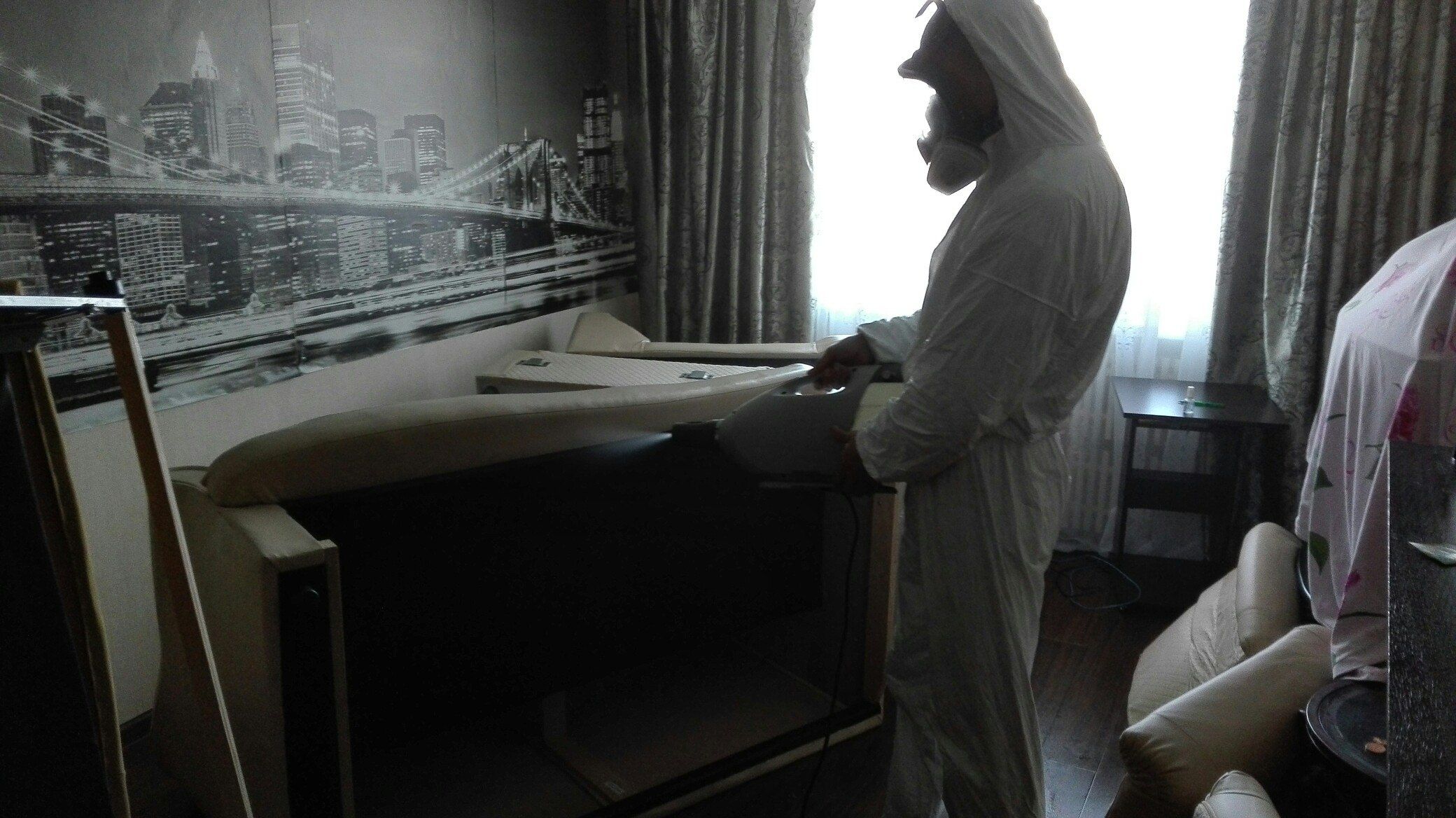 При обработке от клопов нашей санитарной компанией в Нальчике, специалисты — дезинсекторы обрабатывают инсектицидами места их обитания (кровати, диваны, обратную сторону околокроватных ковров) и места возможного расселения (щели вдоль плинтусов, бордюров, места отхождения обоев, вокруг дверных и оконных проемов, под подоконниками, вокруг вентиляционных решеток, щели в стенках мебели, ковры и картины с обратной стороны, сухую штукатурку при облицовке ею стен).